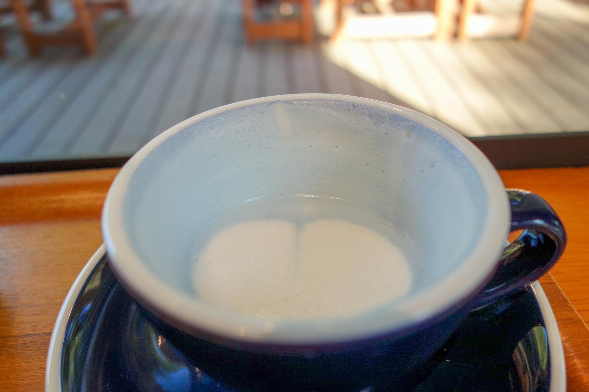 青いお花のハーブ“バタフライピー”で色づけされています。ハートのラテアートがかわいらしくて、飲んでしまうのがもったいないほど。