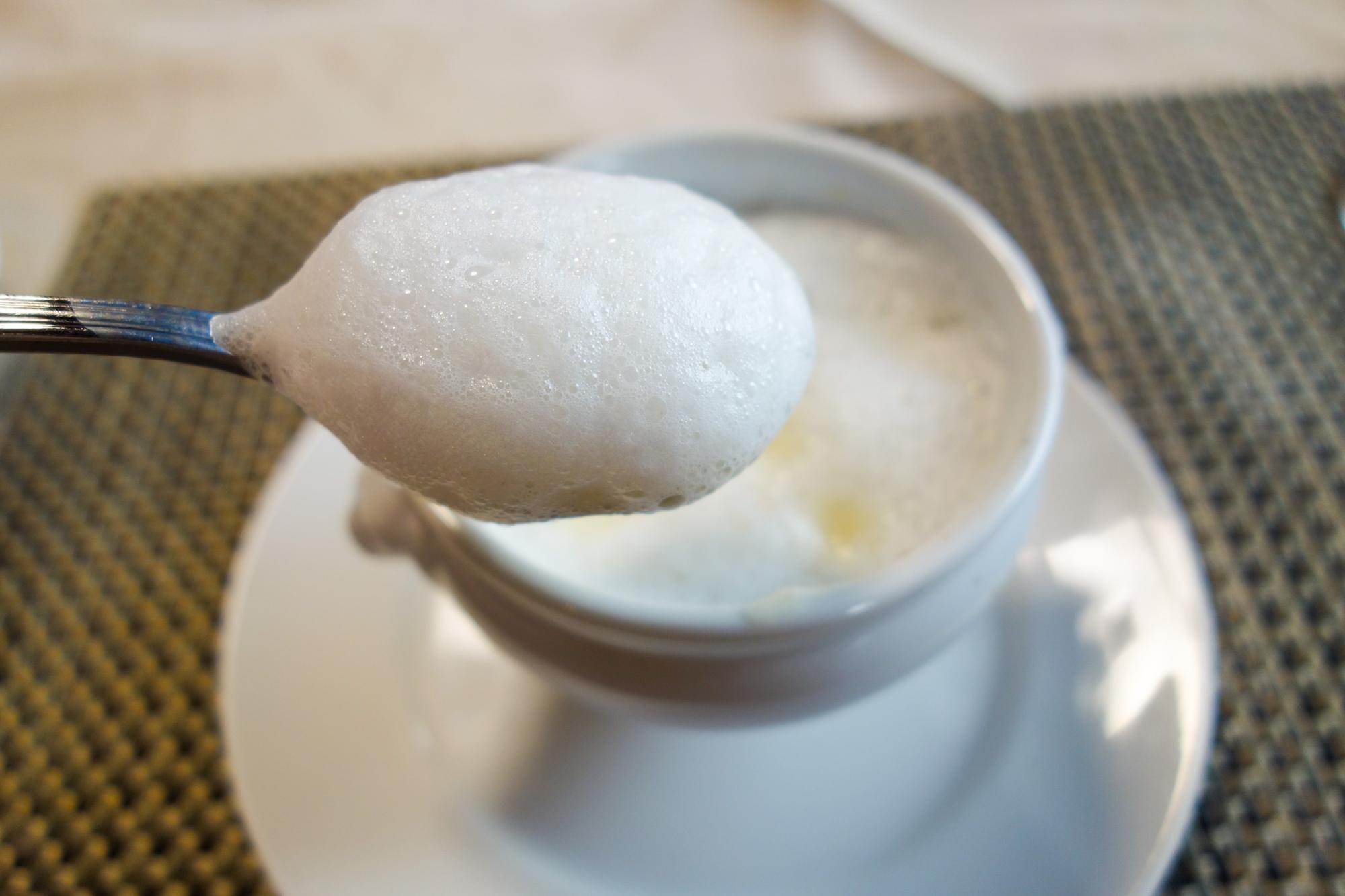 カプチーノのように牛乳を泡立てて、一手間かけた濃厚なポタージュスープ。このふわふわ感、伝わるでしょうか。