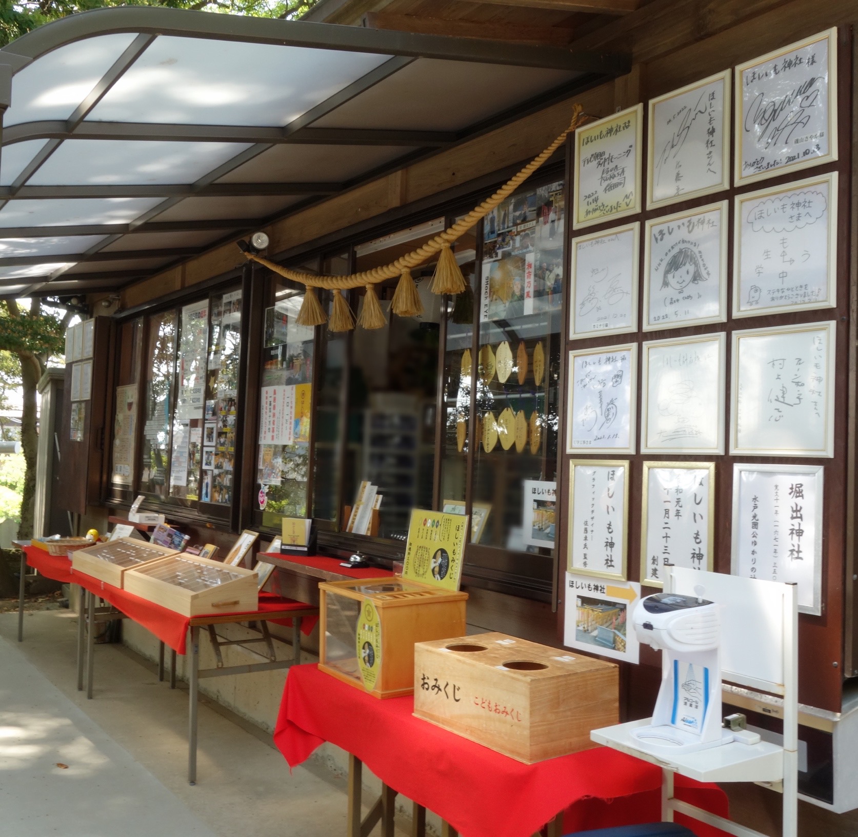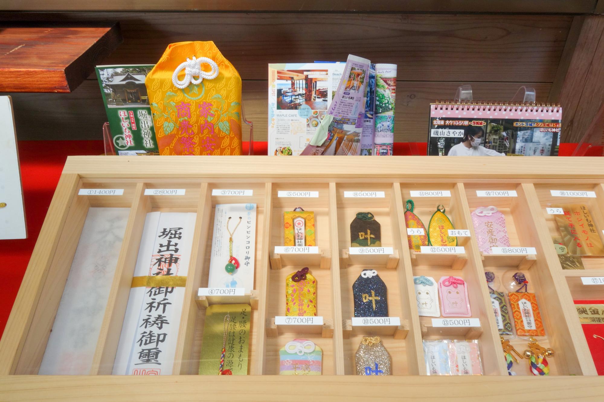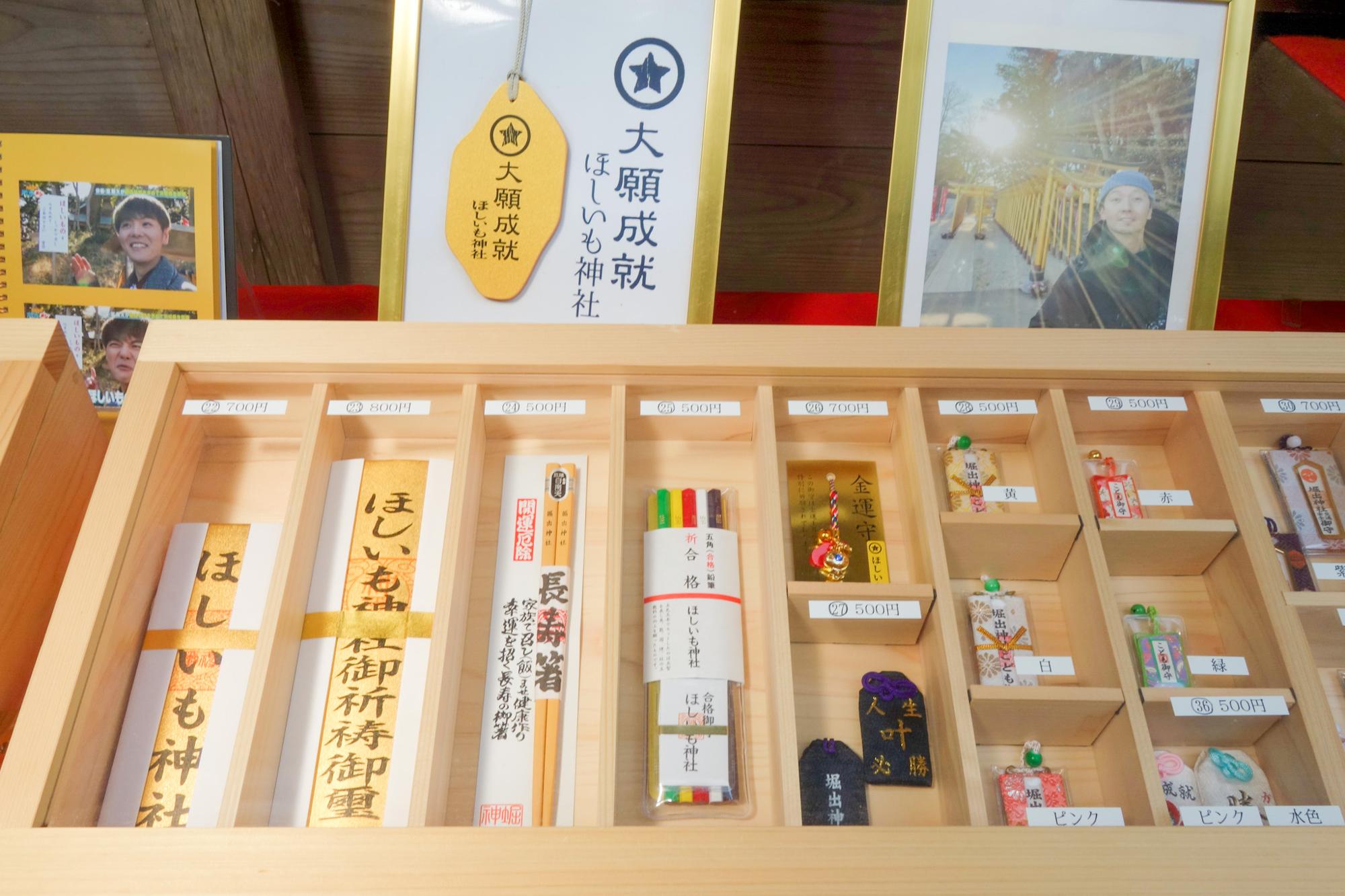 堀出神社の社務所では、堀出神社とほしいも神社の両方のお守りが頒布されています。