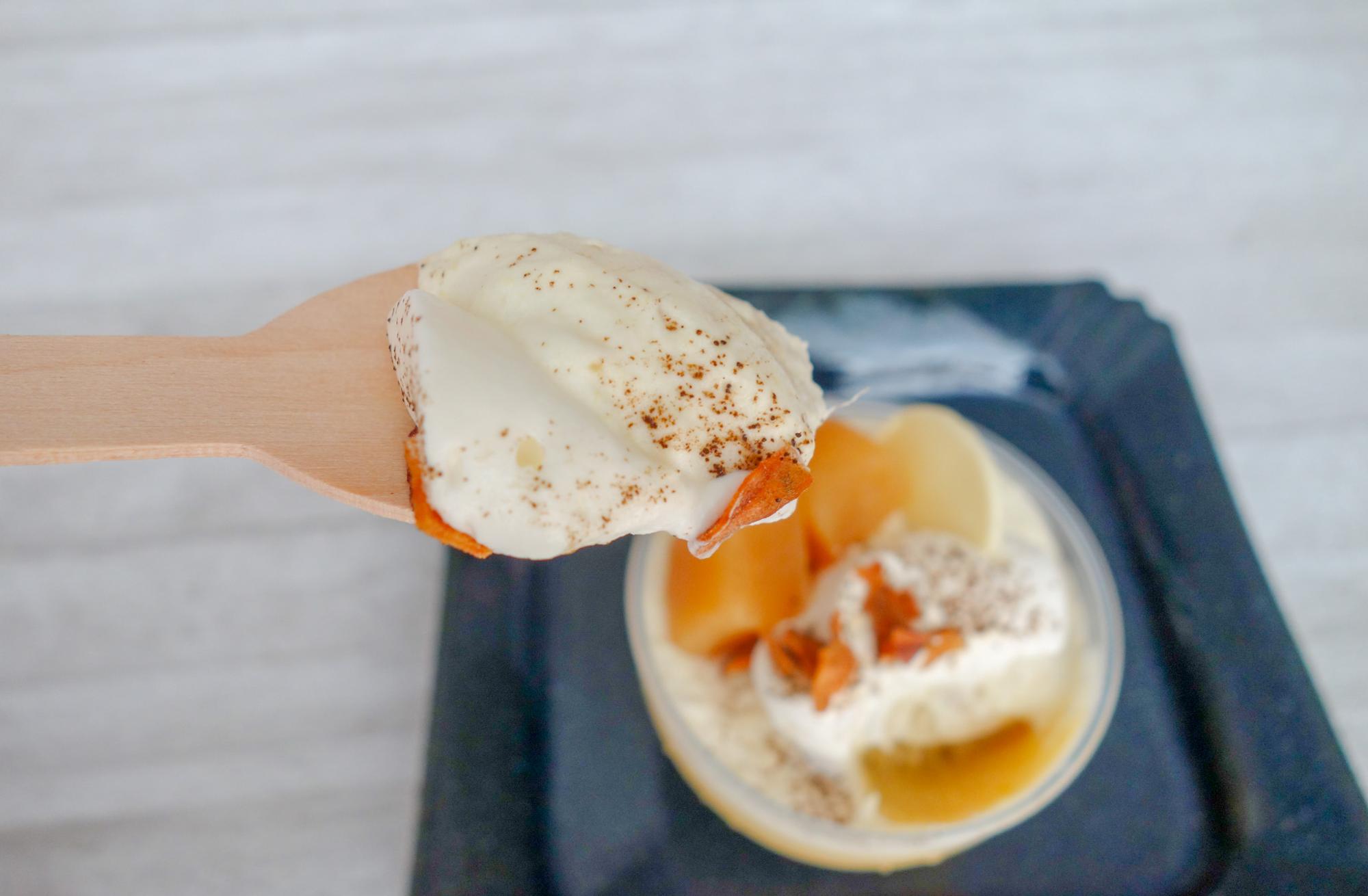 干し芋の生キャラメルやホワイトチョコレートなどのトッピングと、お芋のやさしい甘さの組み合わせを楽しめる一品です。