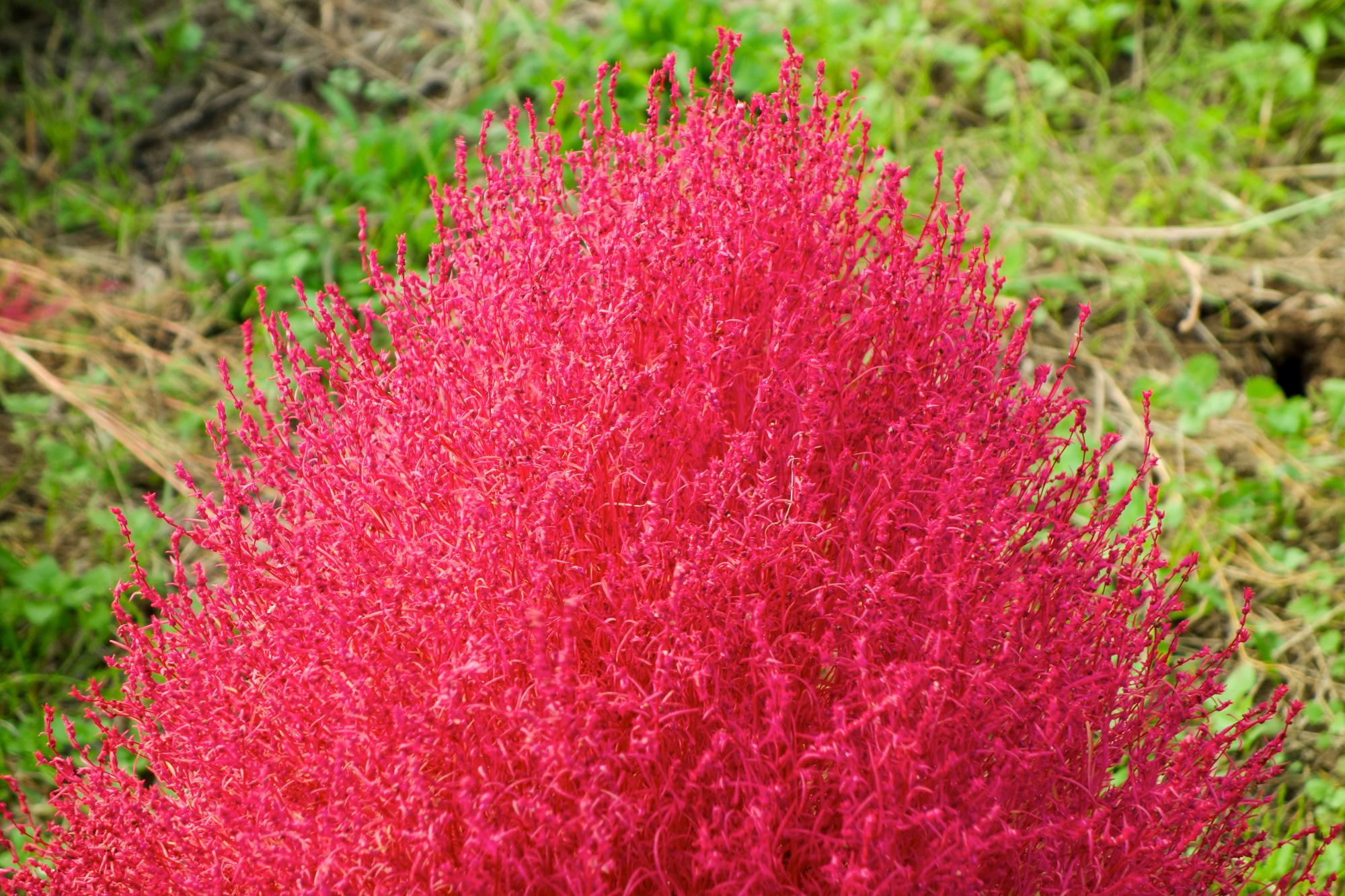 この日は風が強かったので、コキアが風に揺れていました。風に揺られてモフモフしているようすが、今にも動き出しそうで愛らしかったです。赤く色づいたまんまるコキアを見ているだけで、幸せな気持ちになれます。