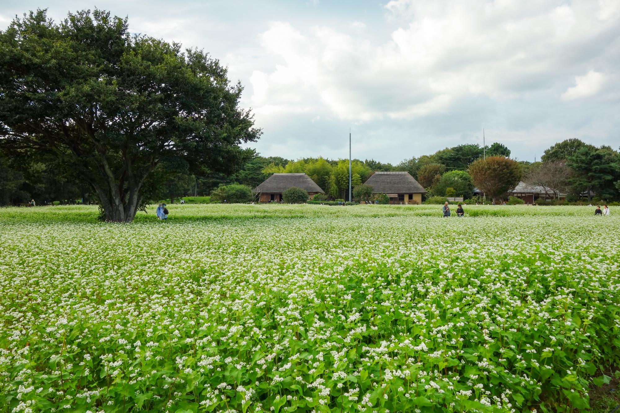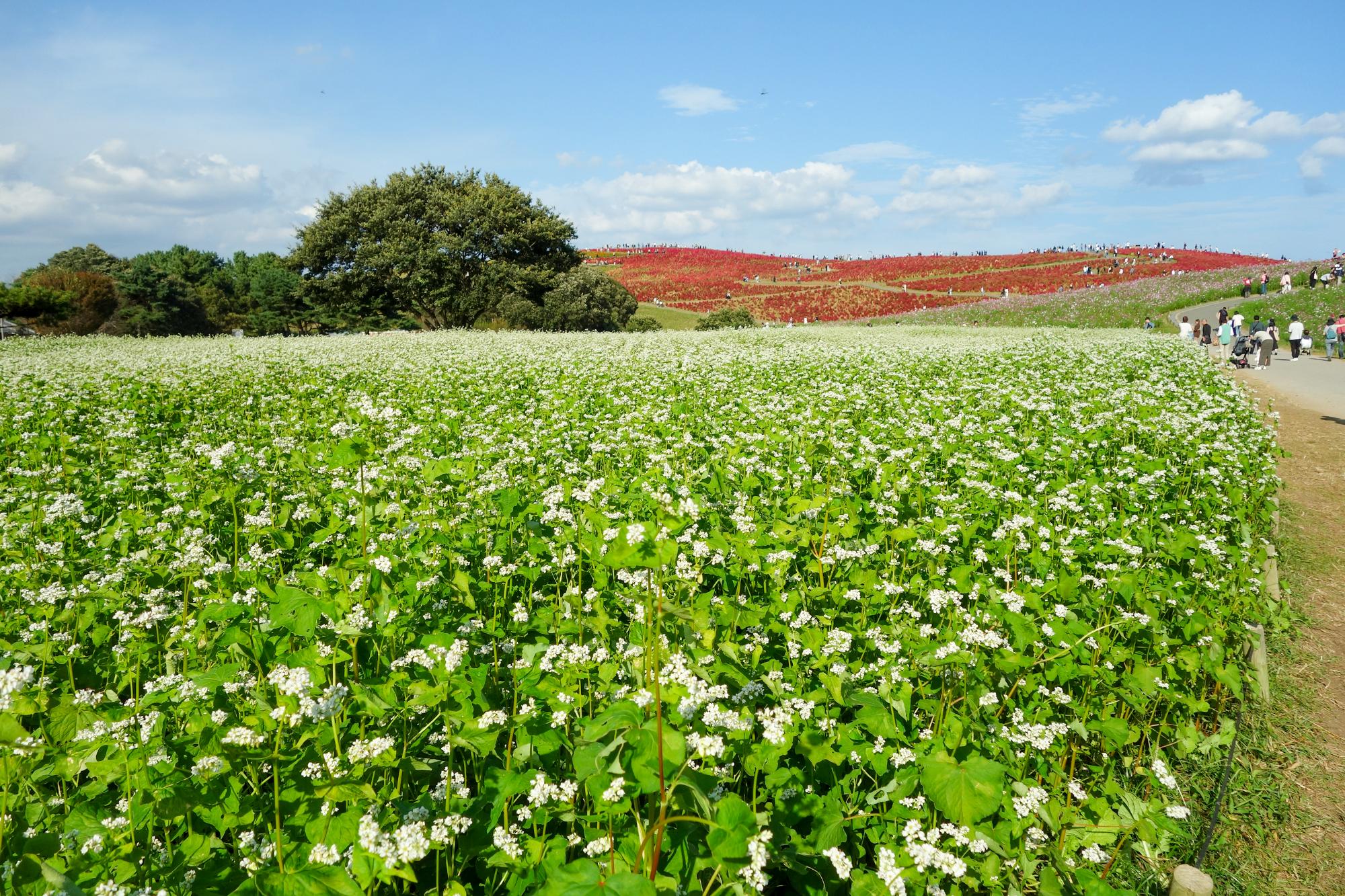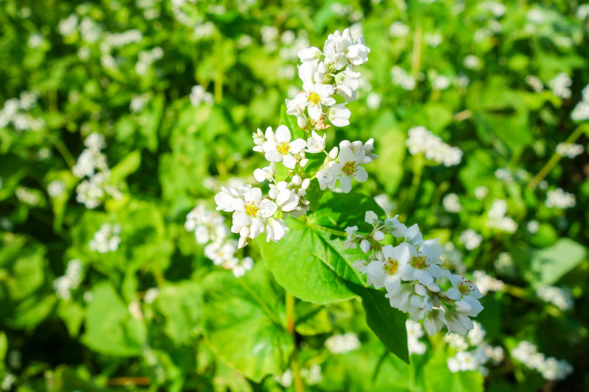 みはらしの里では、ソバが見頃を迎えています。純白の愛らしい花姿です。