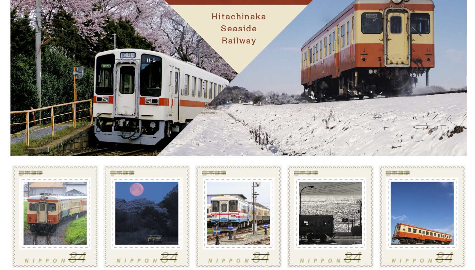 列車が走る背景に四季を感じ、見入ってしまいます。花火や海を背景にしたものが個人的に好みです。他のシートに比べて、切手数は10枚と多めで、お得感があります。