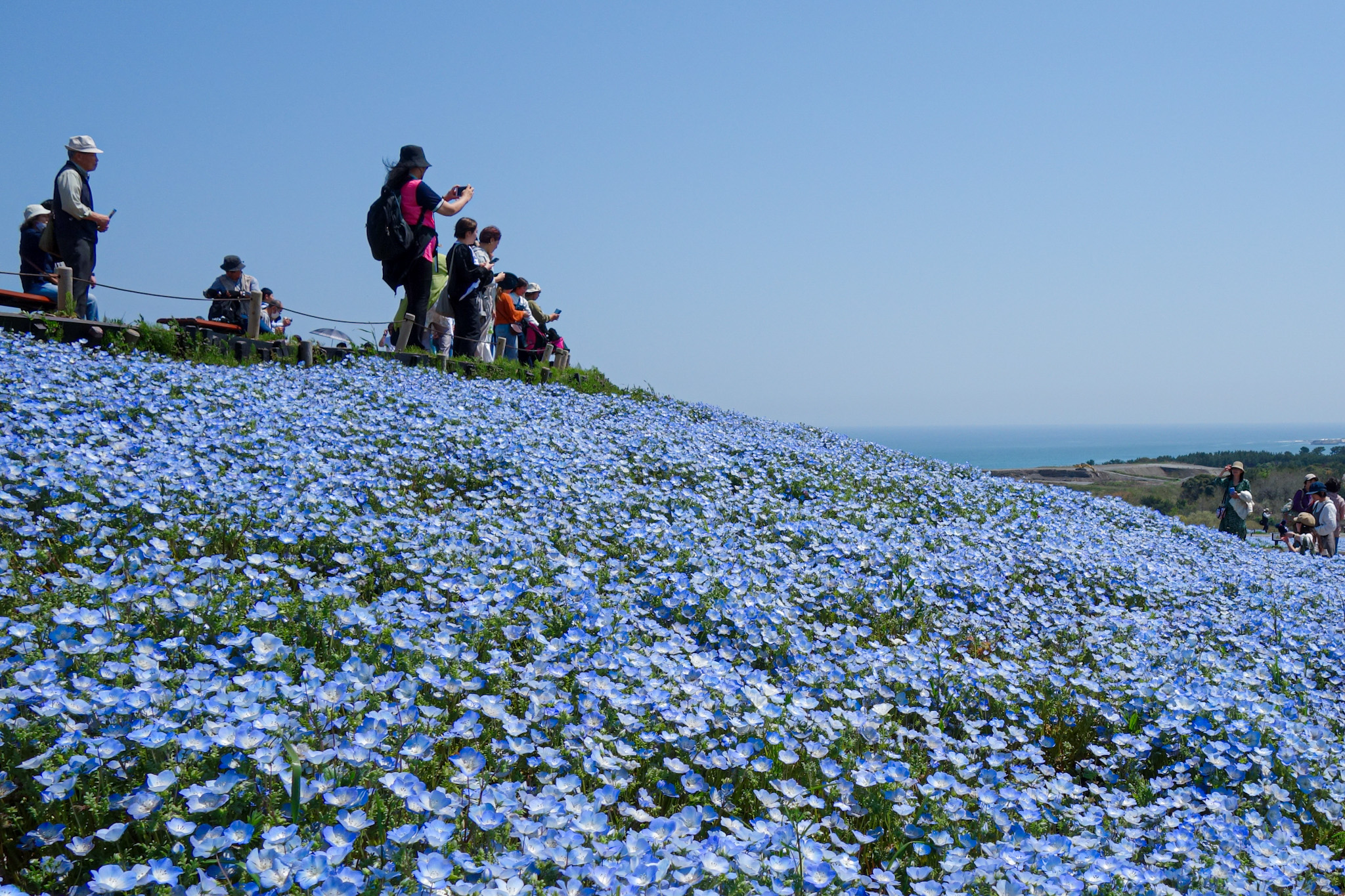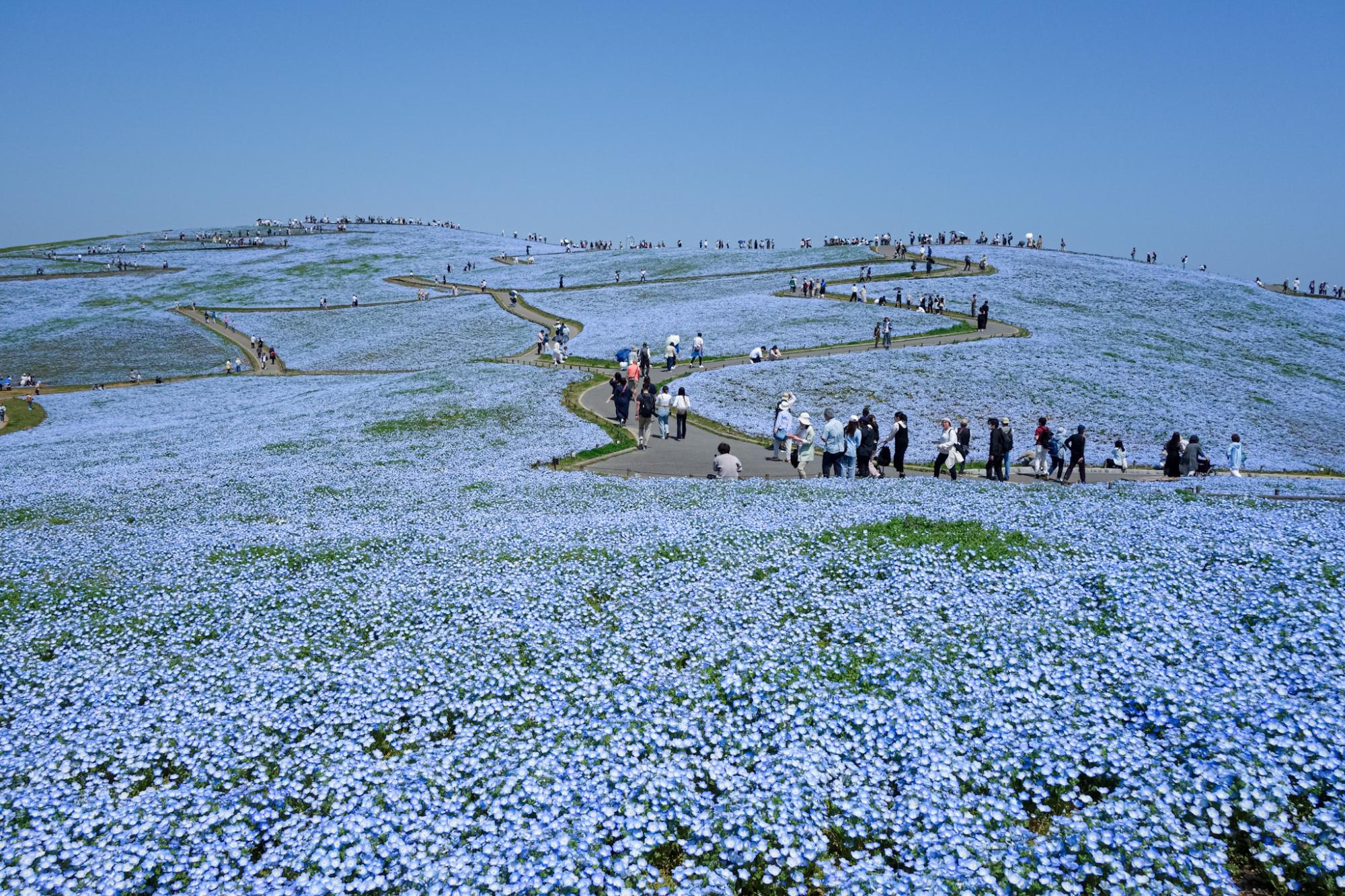 国営ひたち海浜公園「みはらしの丘」では、約530万本のネモフィラが見頃を迎えています。