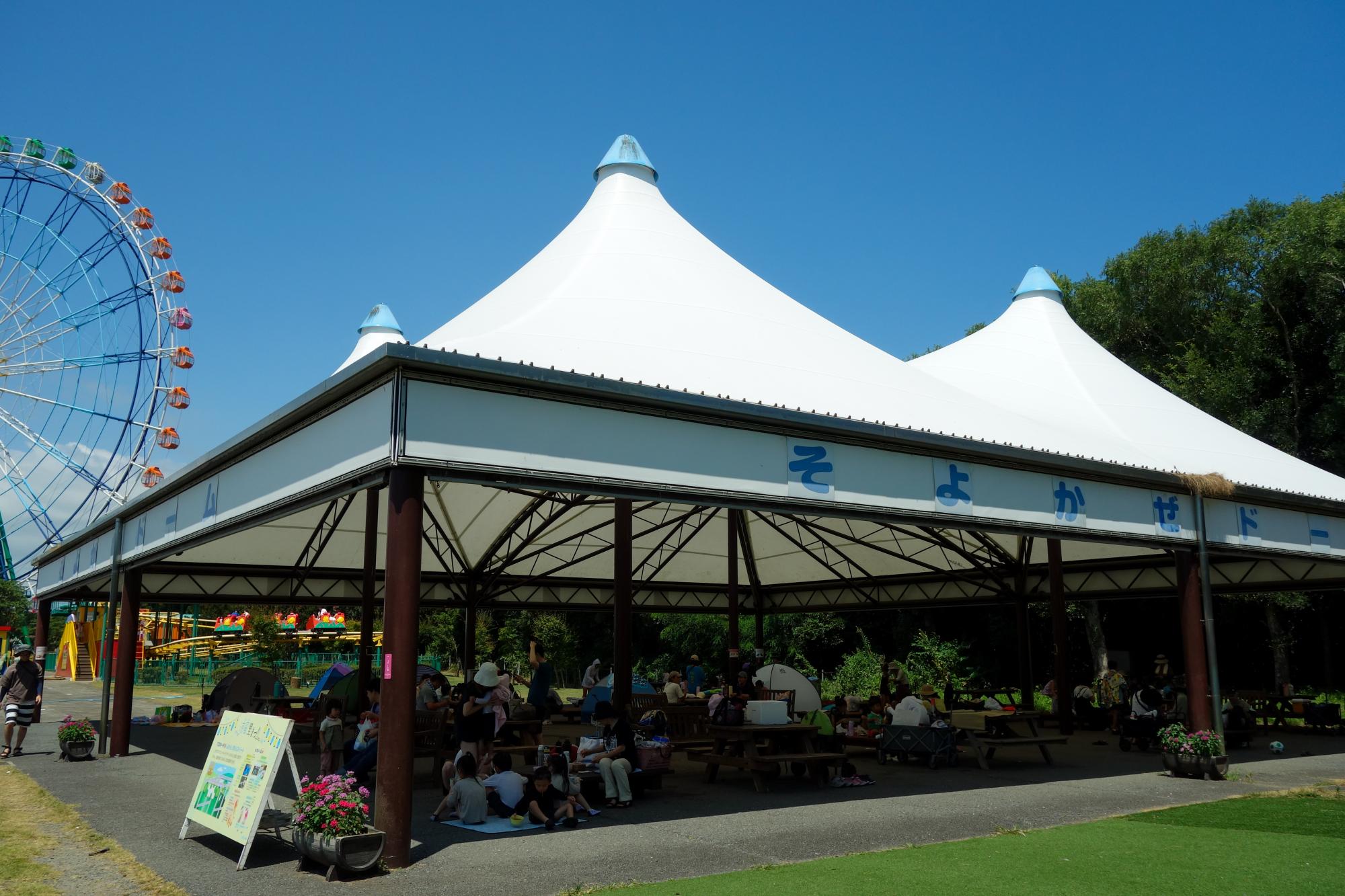 「水遊び広場」の周辺には木陰や休憩テントなどの日陰があるので、保護者や見守り役の方は涼みながらお子様の遊ぶ様子を見守れます。