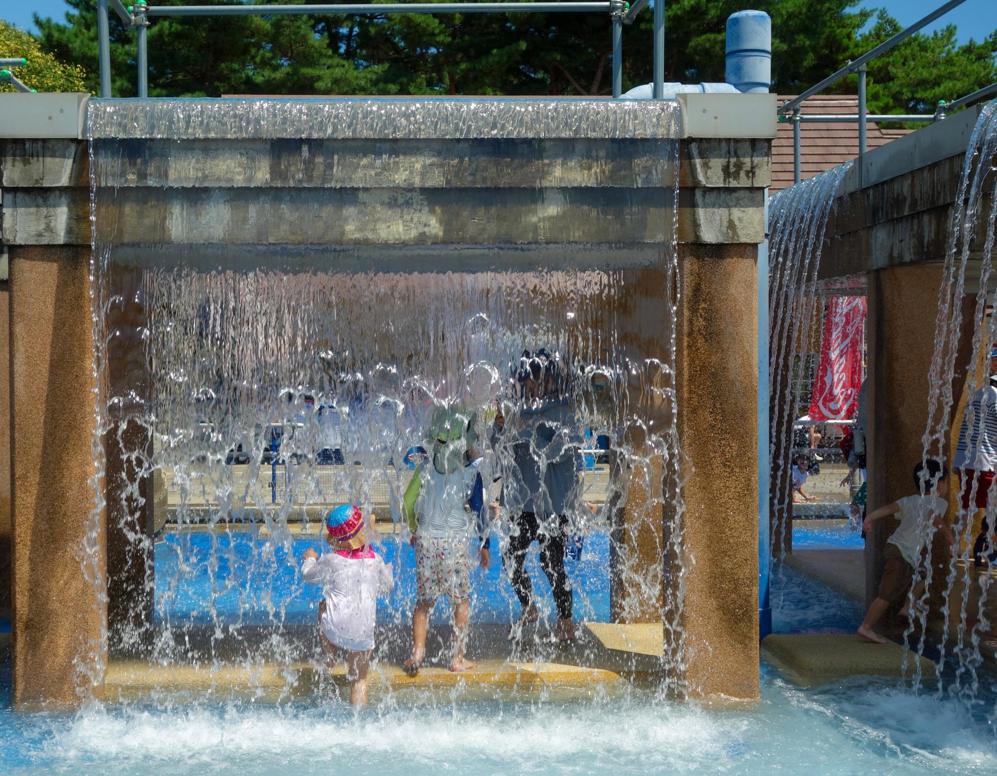 国営ひたち海浜公園「水遊び広場」は、水の壁を通り抜けたり、水辺で寝そべったりと、暑い夏でも涼を満喫できる、同園の人気スポットです。