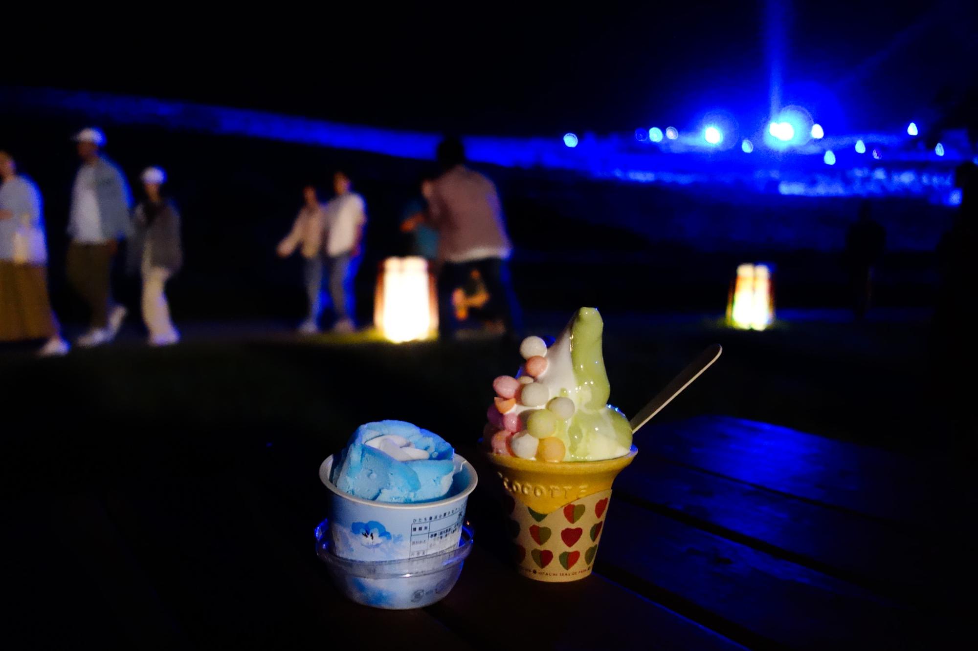 スイーツを片手にライトアップを楽しむ人々の姿が目立ちました。