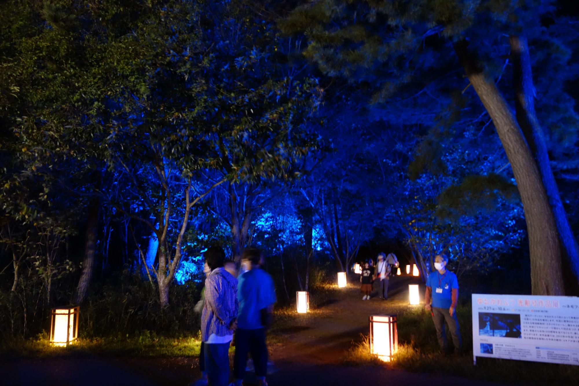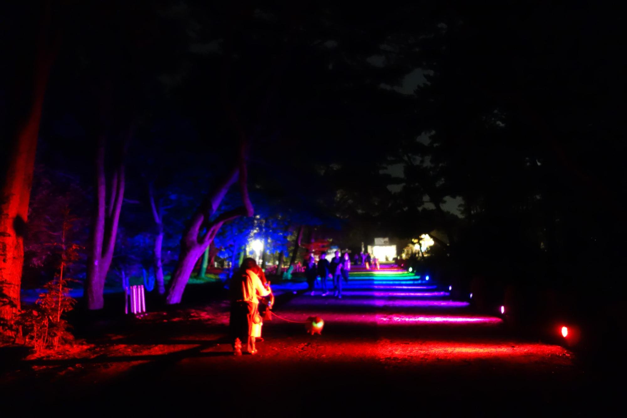 みはらしの丘までの小道もライトアップされており、光の鍵盤のような道を歩くと、日常とは異なる幻想的な風景に心が躍ります。