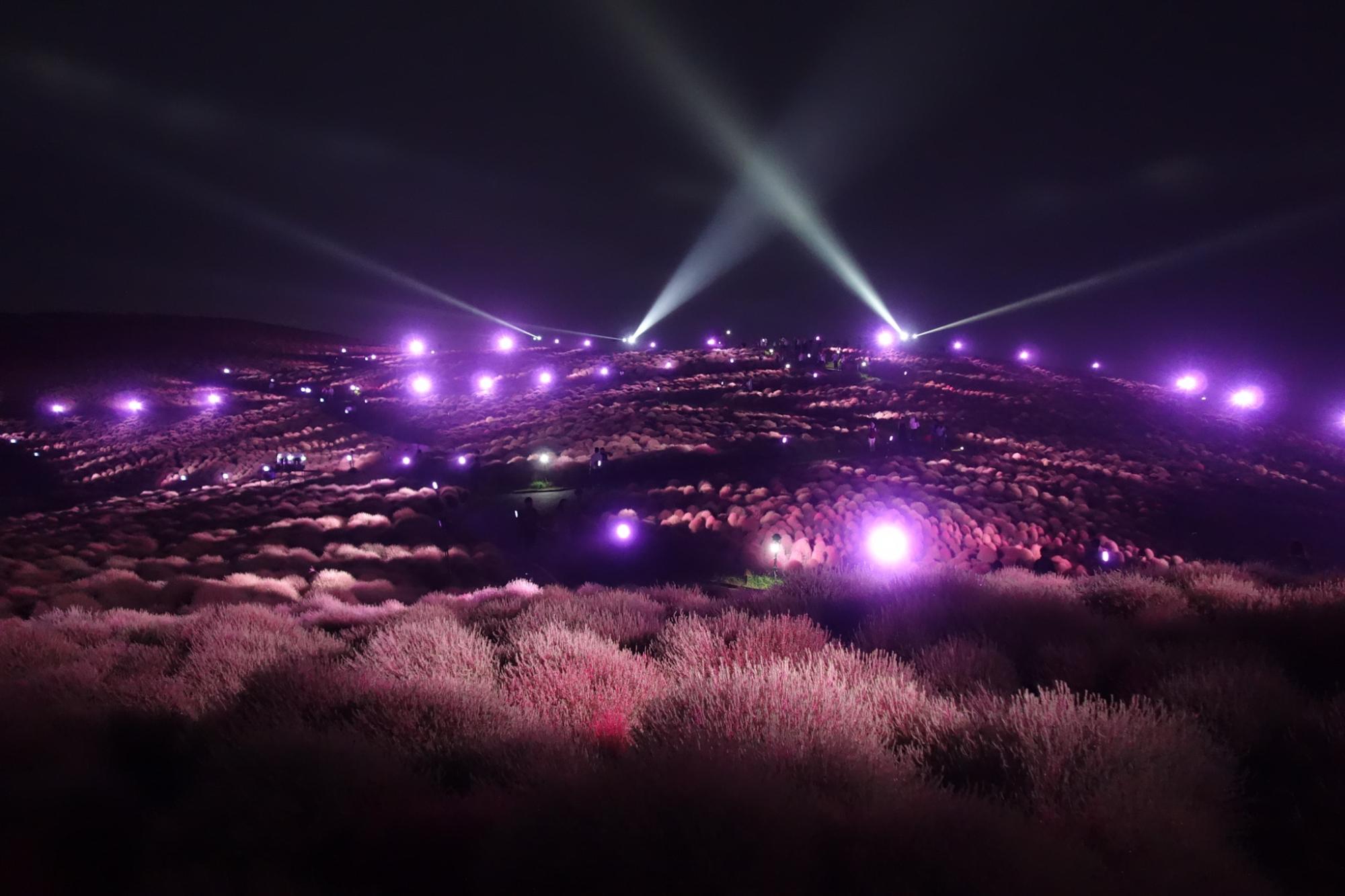 「コキアライトアップ」は、緑色のコキアが見せるもう一つの表情を楽しめる特別なイベントです。